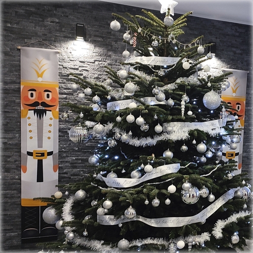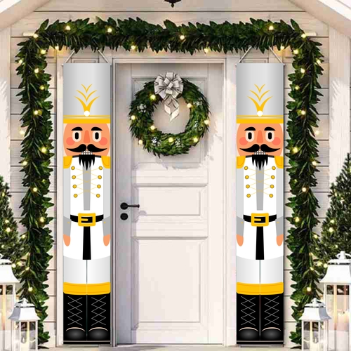 Ez az ünnepi banner markáns, jól felismerhető eleme a karácsonyi dekorációnak. A diótörő figura klasszikus formája erős vizuális hangsúlyt ad, miközben rendezett, ünnepi keretet teremt a térben. Bejárathoz, ajtó mellé, falra vagy kirakatba is jól használható. Önállóan is hatásos, párosítva pedig szimmetrikus, ünnepi megjelenést ad. Kül- és beltéren egyaránt jól érvényesül.